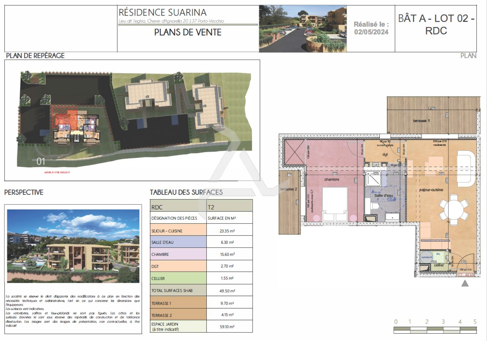 CASA CHA Immobilier® partenaire du réseau Interkab Porto-Vecchio, vous propose en EXCLUSIVITÉ Chemin d’Agnarella (Google Earth), un appartement de Type 2 dans la résidence « SUARINA ».