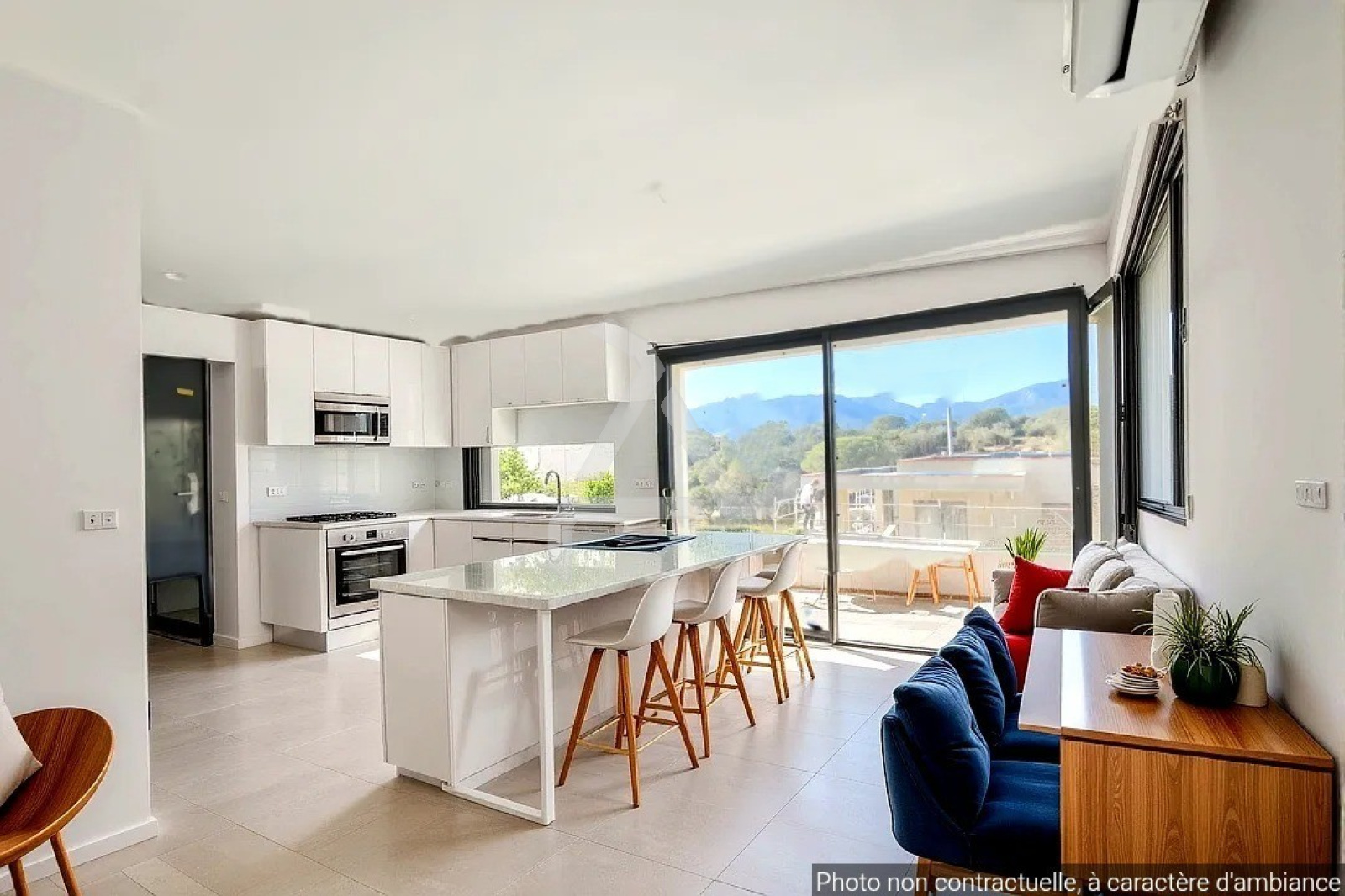 It has a pre-wired kitchen, several storage spaces (built-in closets, pantry), and benefits from excellent thermal and sound insulation for maximum comfort. Three terraces complete this property, perfect for enjoying the mild Porto-Vecchio climate.
