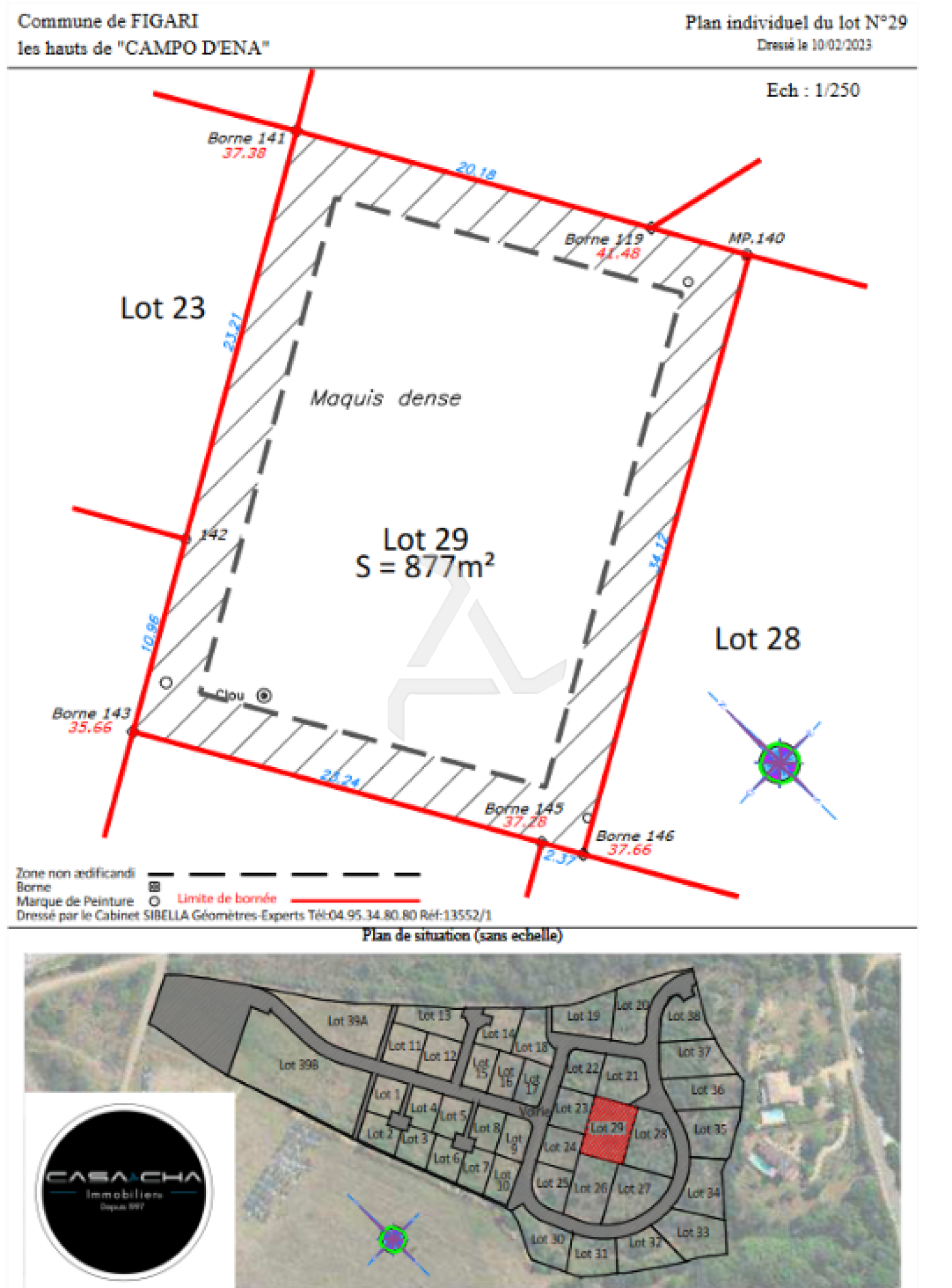 CASA CHA Immobilier® partenaire du réseau Interkab Porto-Vecchio, vous propose à Figari (Google Earth) à moins de 5 minutes du littoral et de son port de loisir, dans la résidence "Les Hauts de Campo d'Ena", une parcelle de terrain à bâtir de 877m² en position dominante offrant de très jolies vues.
