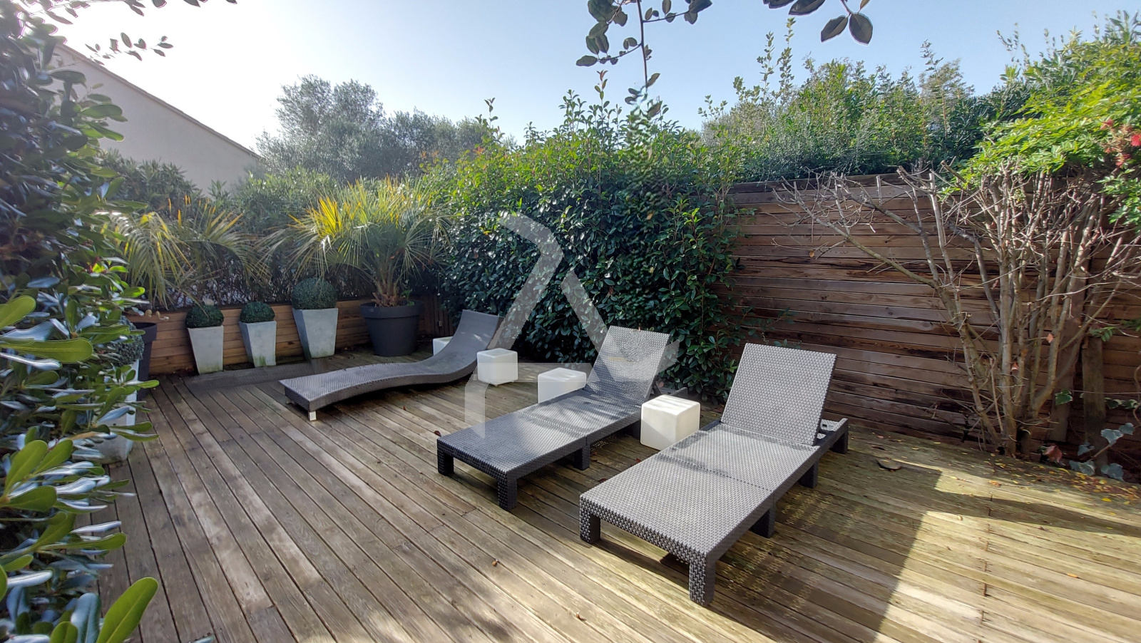 CASA CHA Immobilier®, a partner of the Interkab Porto-Vecchio network, offers a 775 ft² single-story, south-east-facing 2-bedroom apartment located on a cul-de-sac near the port and downtown Porto-Vecchio (Google Earth), in a beautiful, quiet, tree-lined building built in 2009. A furnished and equipped kitchen opens onto a living room opening onto a 139 ft² covered terrace, which extends into a 828 ft² wooden deck that can accommodate a jacuzzi, as stipulated in the condominium regulations. This apartment features 1 bathroom and 1 separate toilet, as well as 2 bedrooms, one with a walk-in closet and the other with a shower room and private toilet. The apartment is sold with a parking space.