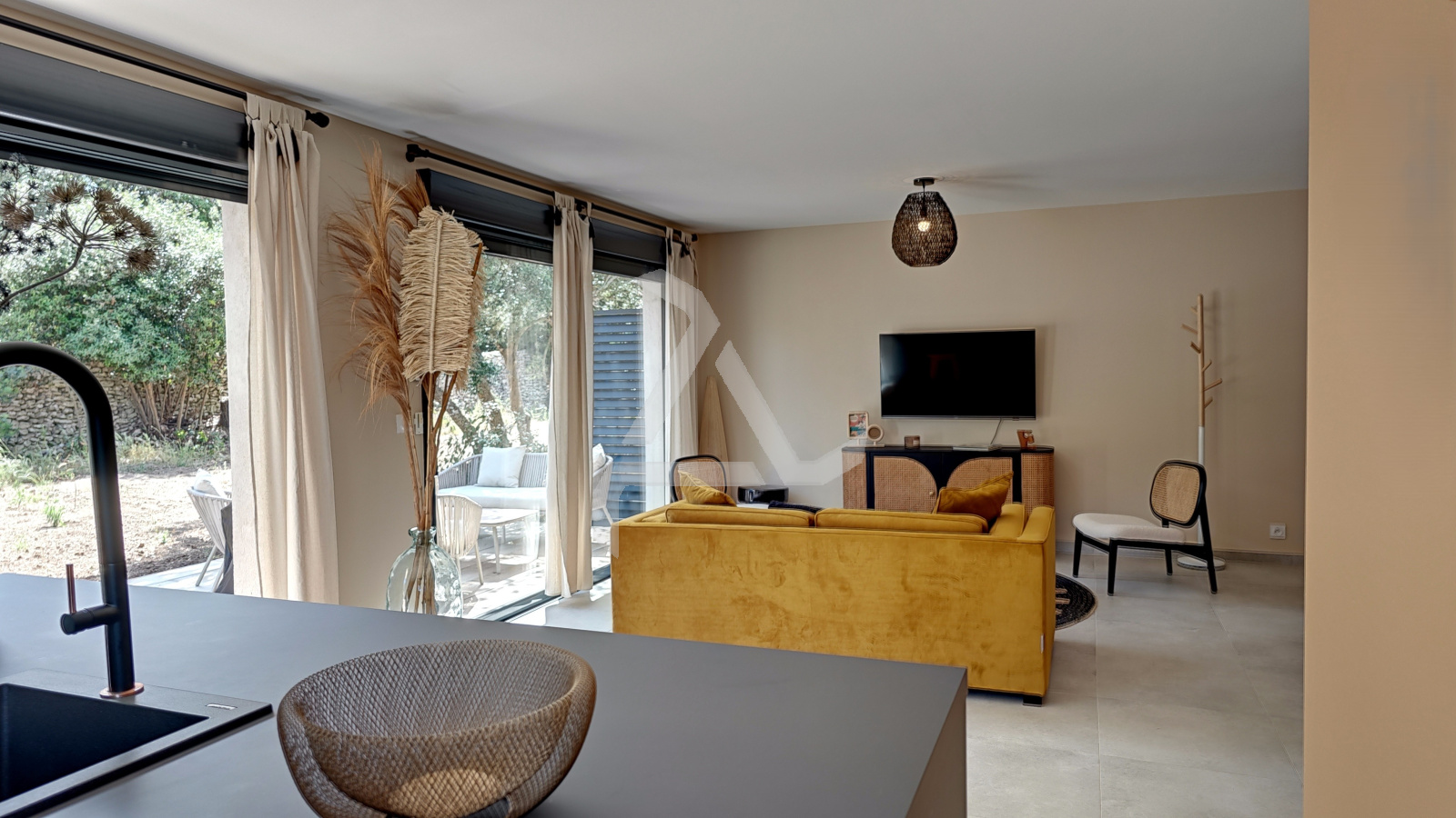 CASA CHA Immobilier®, a partner of the Interkab Porto-Vecchio network, offers a quiet location in Bonifacio (Google Earth), close to the beaches and the Sperone Golf Course. This secure 2024 residence comprises 20 apartments on approximately 91493 ft² of land enclosed by local dry stone. This apartment offers a 1065 ft² two-bedroom duplex with a spacious 452 ft² living room/kitchen, three bedrooms, one with a private bathroom and balcony, and a 279 ft² terrace extending into a small garden. Its south-east exposure, its dominant location, and its location at the end of the residence adjoining the maquis make it an exceptional property. This apartment, offering excellent amenities, is sold fully furnished (€45,000) with a covered parking space. A garage is available for €25,000. Reduced notary fees.