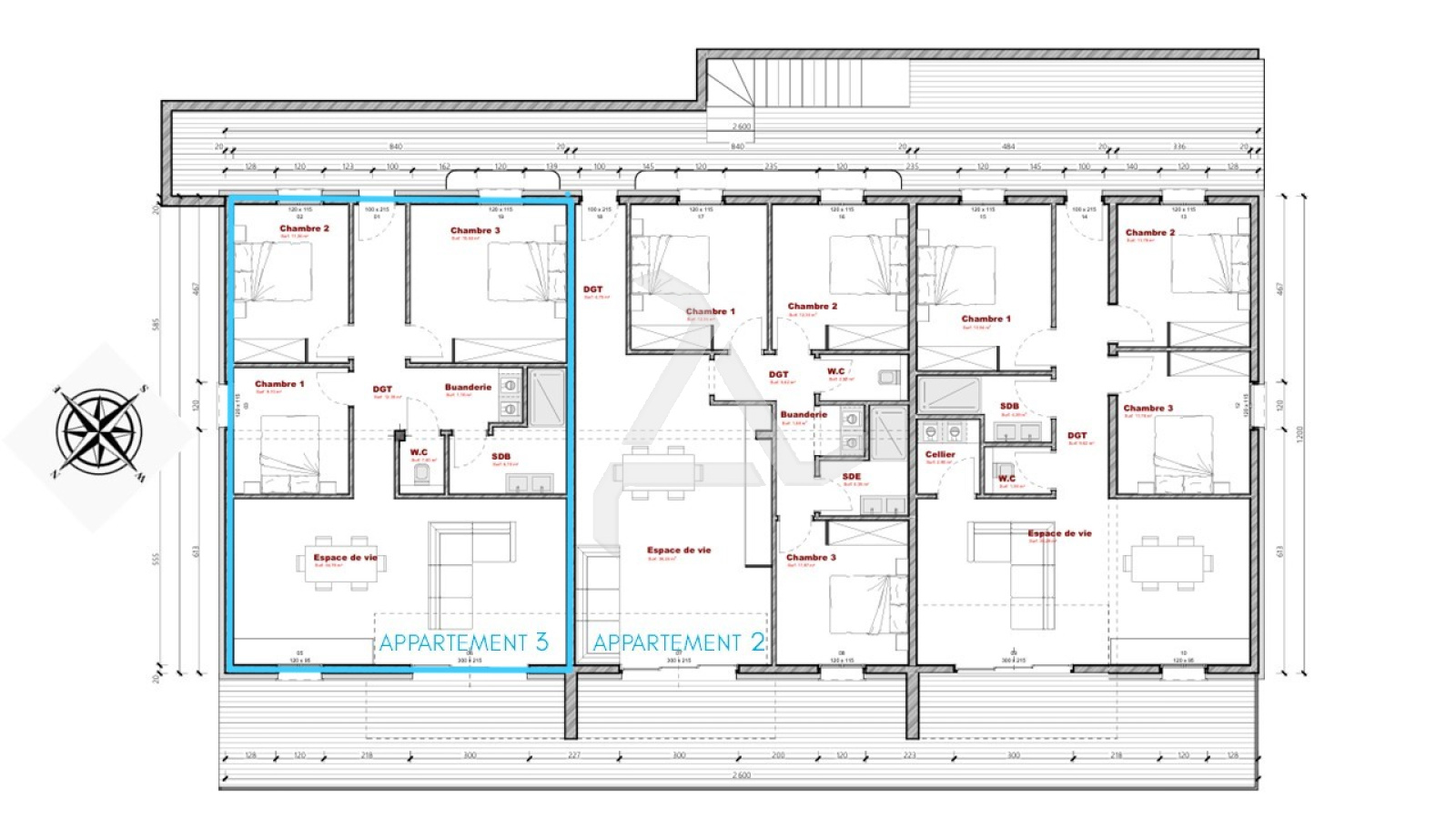 Ce programme se compose de 3 appartements en rez-de-jardin et 3 en rez-de-chaussée proposant 2 voire 3 chambres, offrant confort, accessibilité et qualité de vie.