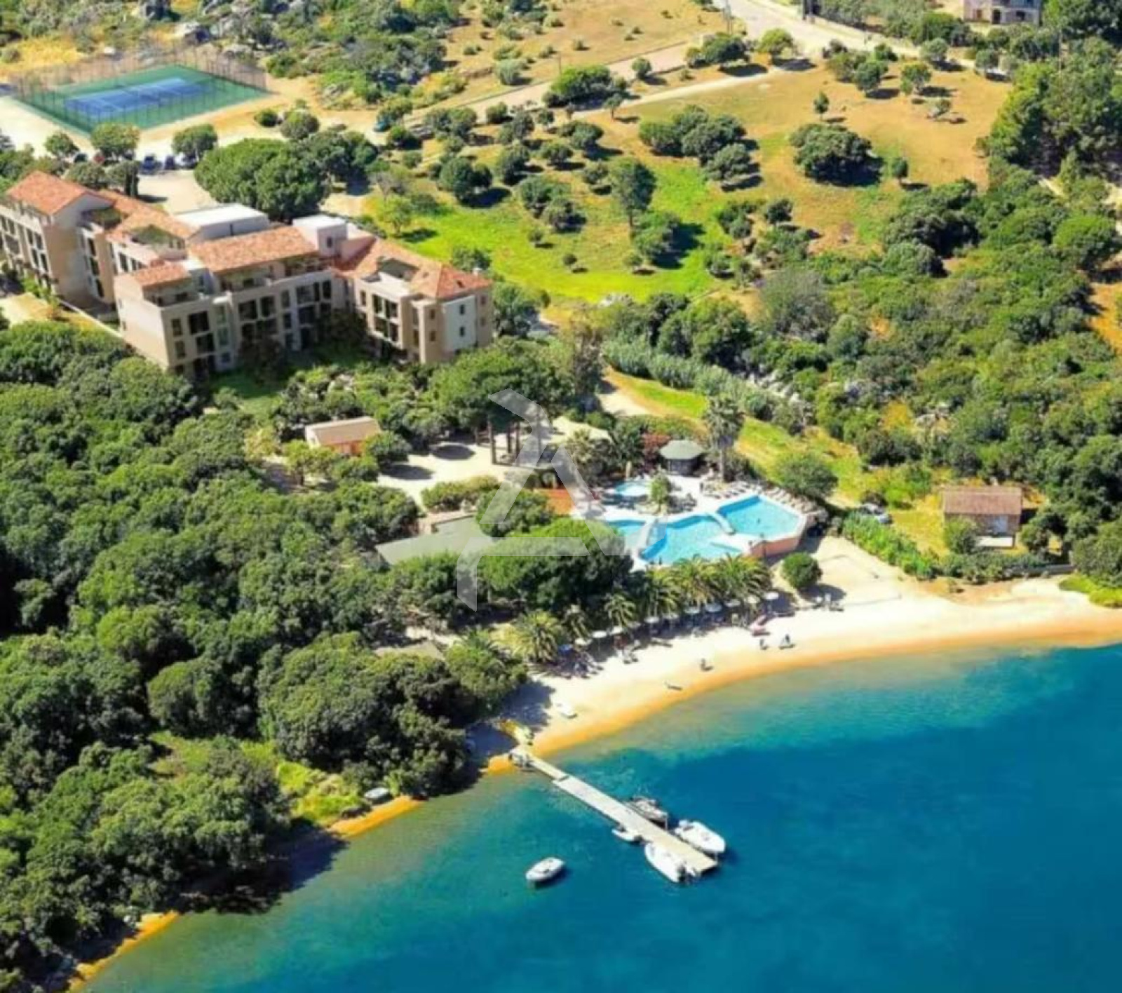 CASA CHA Immobilier®, a partner of the Interkab Porto-Vecchio network, offers you in the extreme south of Corsica (Google Earth), a true paradise located 18 minutes from Figari airport, in a fully renovated residence that meets current standards, with an elevator, set in the heart of a park of over 86111 ft² landscaped with Mediterranean plants.