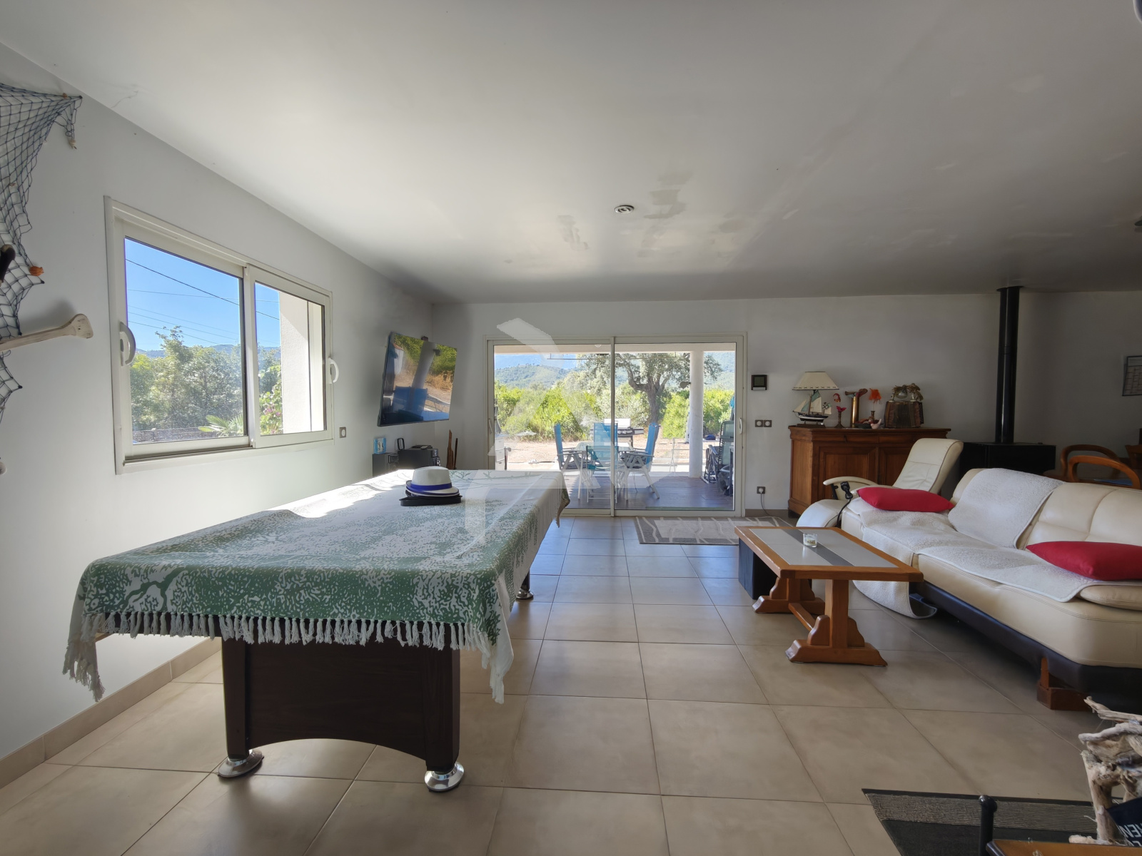 CASA CHA Immobilier® Porto-Vecchio exclusively offers for sale, under a life annuity (occupied property), a pleasant villa in Prunelli di Fiumorbo, located outside of a housing development in a very natural setting, close to recently built sports facilities and 10 minutes from the beach. This traditional house, built in 2014, features a spacious living room with an open kitchen and two bedrooms, including a master suite. A very large garage is attached to the house. The 10763ft² plot is fenced and landscaped, and the very large south-west facing terrace offers spectacular views of the nearby mountains.