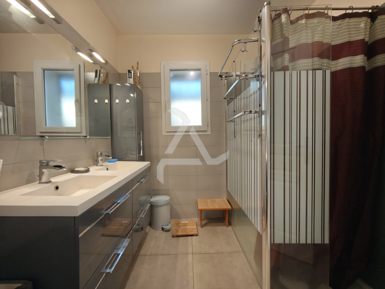 CASA CHA Immobilier® Porto-Vecchio vous propose en EXCLUSIVITÉ et en VIAGER OCCUPÉ une agréable villa à Prunelli di Fiumorbo située hors lotissement dans un quartier très naturel et à proximité immédiate des récentes infrastructures sportives et à 10 minutes de la plage. Cette construction traditionnelle de 2014 possède un spacieux séjour avec cuisine ouverte et 2 chambres dont une suite parentale. Attenant à la maison, on retrouve un très grand garage. Si le terrain de 1000m² et clos et paysagé, la très grande terrasse exposée Sud-Ouest offre des vues spectaculaires sur le relief montagneux situé à proximité.